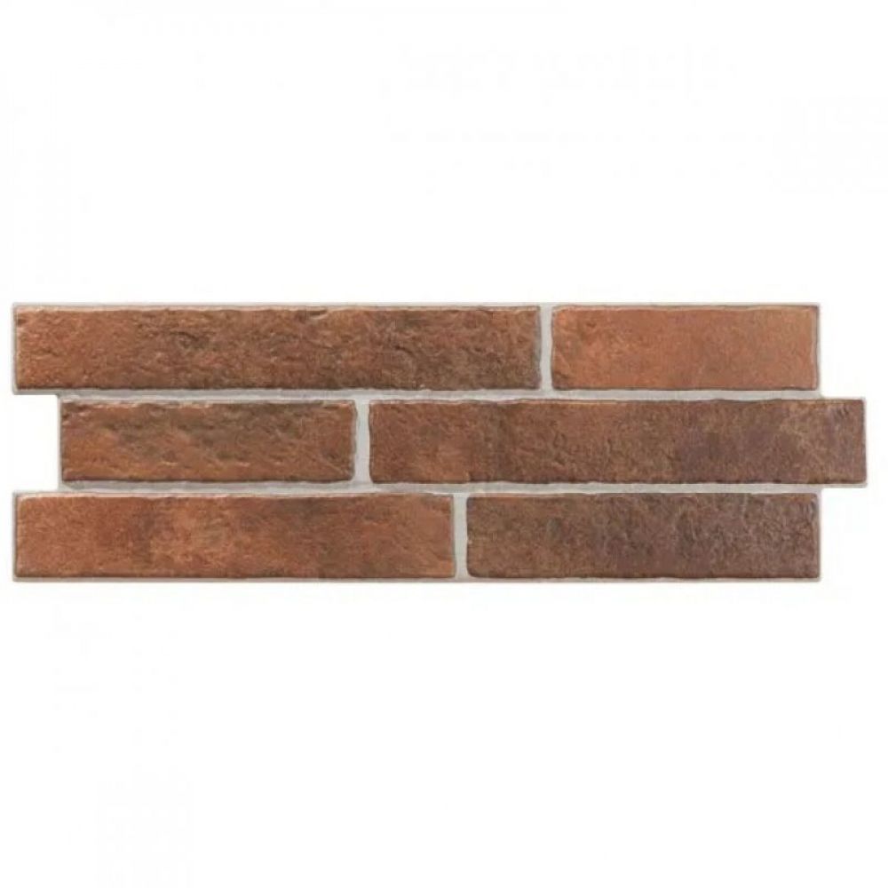 Gres porcelanska glazirana rektificirana za unutrašnje i spoljašnje oblaganje zidova. Mat pločica, imitacija cigli, braon, narandžaste boje. Zidna pločica, za postavljanje unutra ili napolje. Blago je reljefna,