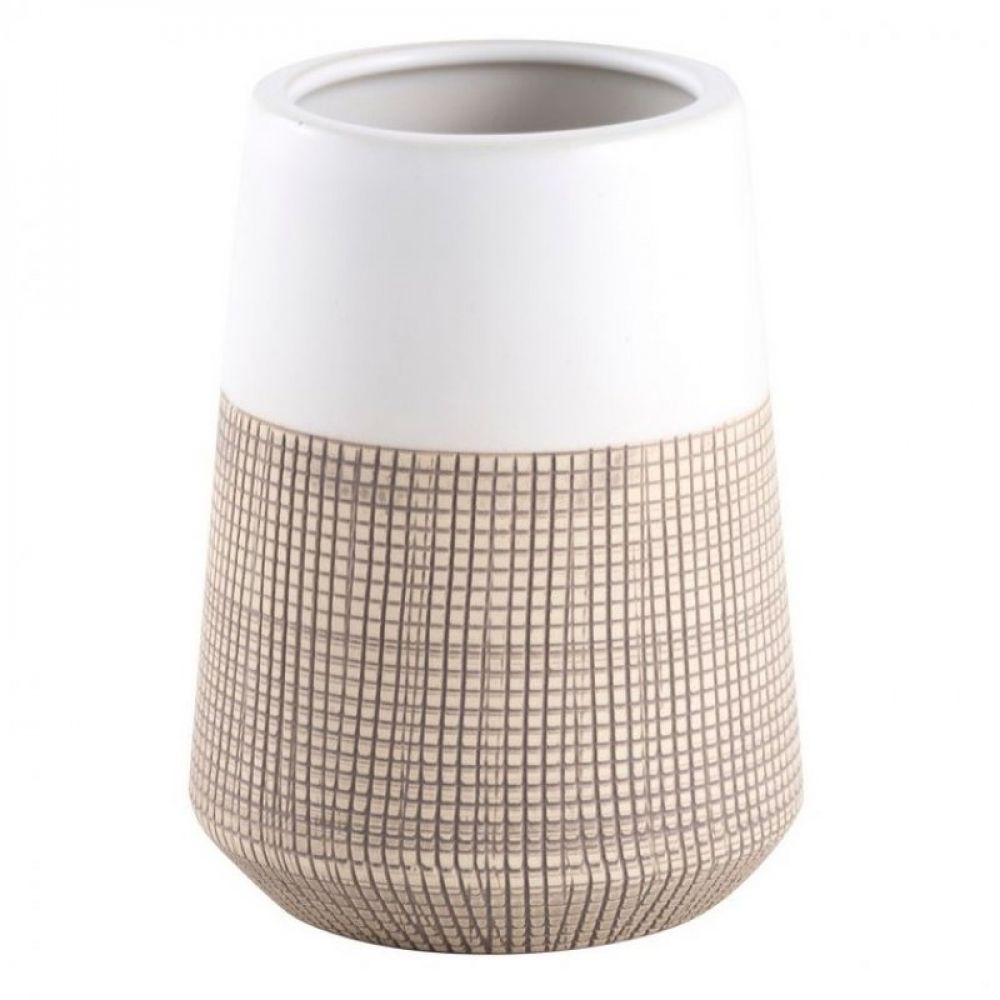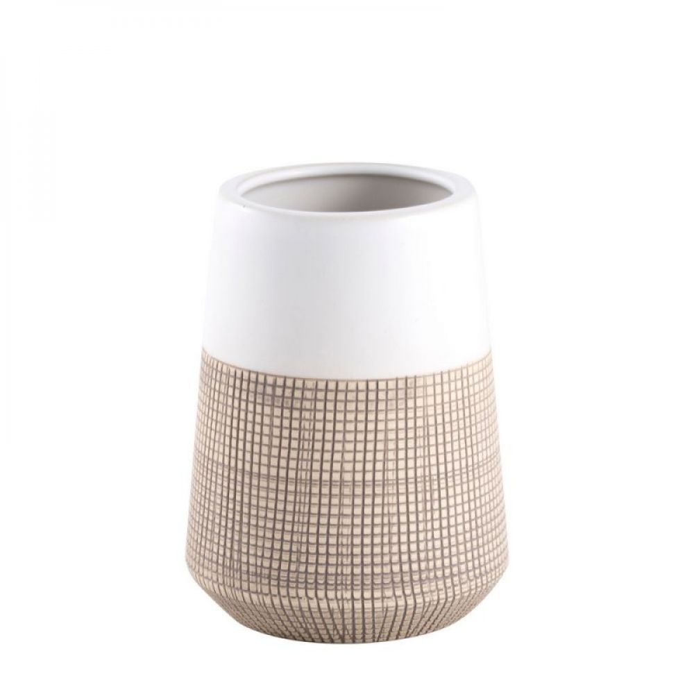 Opis: Čaša iz serije ISANA. Kućište je napravljeno od kamena. Donji deo je smeđe boje i ima žlebove za lakši hvat, dok gornji deo ima glatku površinu i bele je boje.