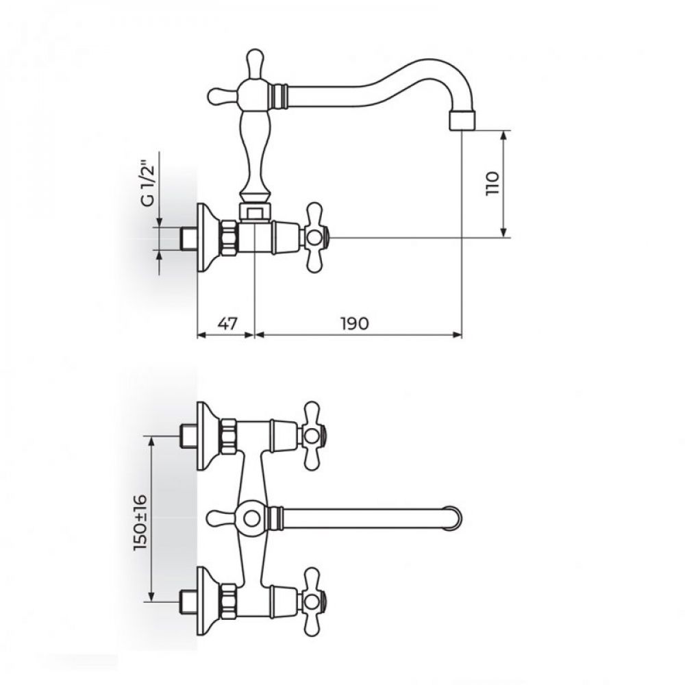 Naziv proizvoda: BRONTEE NB03201 Baterija za lavabo zidna - gornji izliv