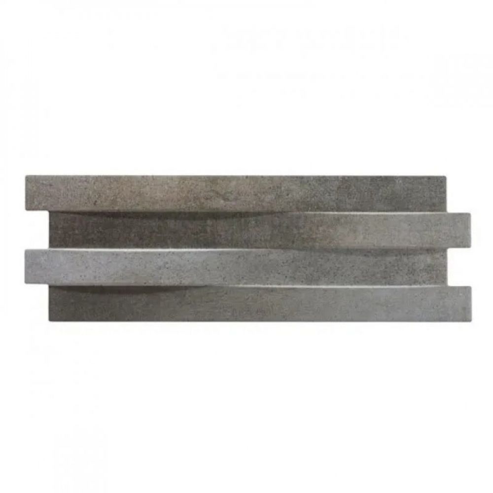 Gres porcelanska glazirana rektificirana za unutrašnje i spoljašnje oblaganje zidova. Mat pločica, imitacija kamena, crno, grafitne boje. Zidna pločica, za postavljanje unutra ili napolje. Pogodna za fasade. Blago je reljefna. Španska pločica.