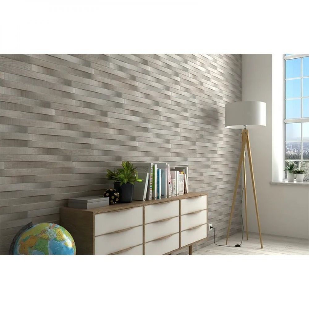 Gres porcelanska glazirana rektificirana za unutrašnje i spoljašnje oblaganje zidova. Mat pločica, imitacija kamena, svetlo sive boje. Zidna pločica, za postavljanje unutra ili napolje. Pogodna za fasade. Blago je reljefna. Španska pločica.