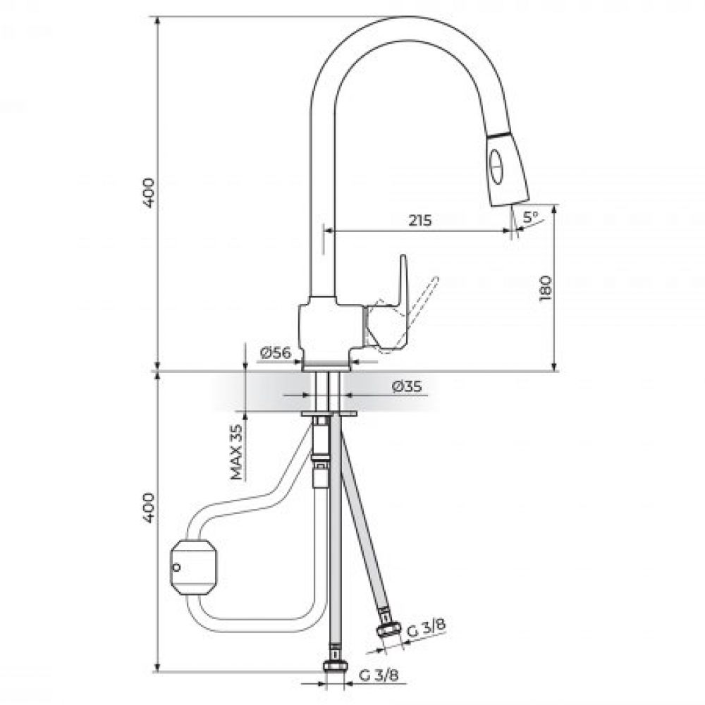 Naziv proizvoda: CUBO3 JC38501 Baterija za Sudoperu sa Izvlačnim Tušem
