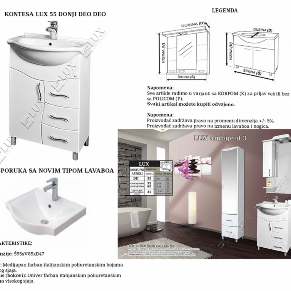 Front: medijapan farban italijanskim poliuretanskim bojama visokog sjaja. Korpus (bokovi): univer farban italijanskim poliuretanskim bojama visokog sjaja.