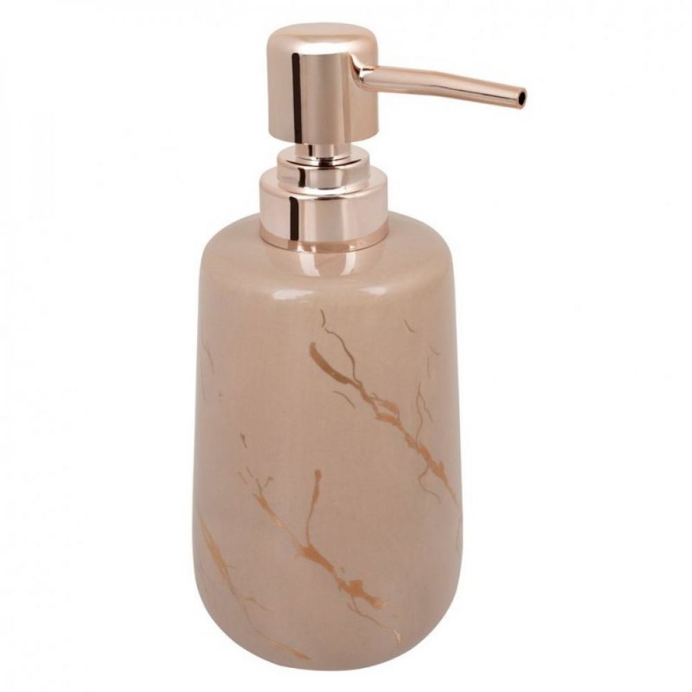 Opis: Mermerni kupatilski set Diosa biće savršen dodatak kupatilima u glamuroznom i boho stilu. Čitav set uključuje dozator za sapun, šolju za kupatilo, posudu za sapun i četku za toalet. Dozator za tečni sapun Diosa ima veliki kapacitet od 410 ml, tako da ne morate da brinete o njegovom čestom dopunjavanju. Funkcionalna pumpa dozira pravu količinu sapuna za ruke. Napravljen je u modernoj ružičasto zlatnoj boji.