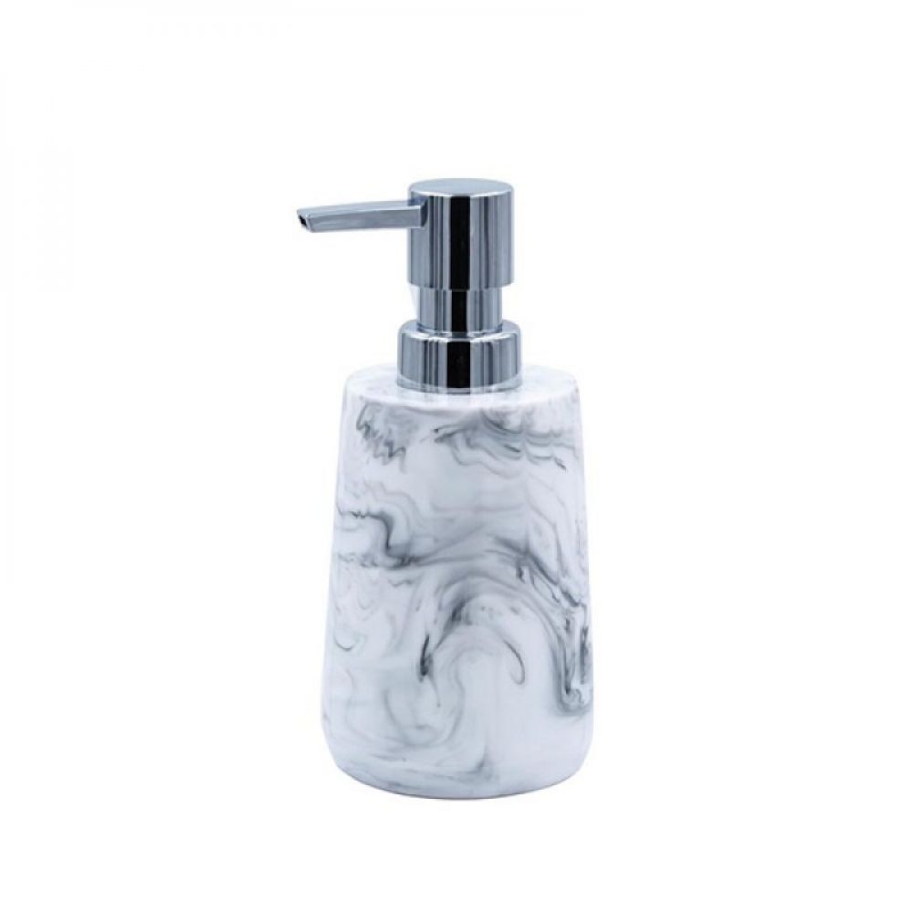 Dozer za tečni sapun Polirezin Toscana Ridder 2154501 je elegantan kom ukrašen šarom inspirisanom belim mermerom. Vrlo je dekorativan, a zahvaljujući svojim dimenzijama od 8,4x16x7cm, lako će naći svoj prostor na umivaoniku ili na polici u tuši ili iznad kade. Dozer za tečni sapun Polirezin Toscana Ridder 2154501 je izrađen od kvalitetnog i dugotrajnog Polirezina, sa hromiranom plastičnom pumpicom. Pumpica sa celim mehanizmom se može skinuti, kako bi se olakšalo čišćenje dozera. Po potrebi, dozer se može prati u mašini za sudove.