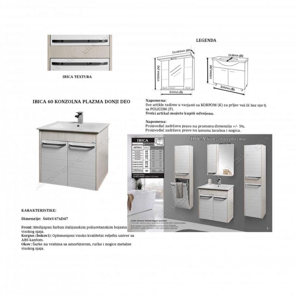 Naziv proizvoda: IBICA 60 KONZOLNA PLAZMA - donji deo