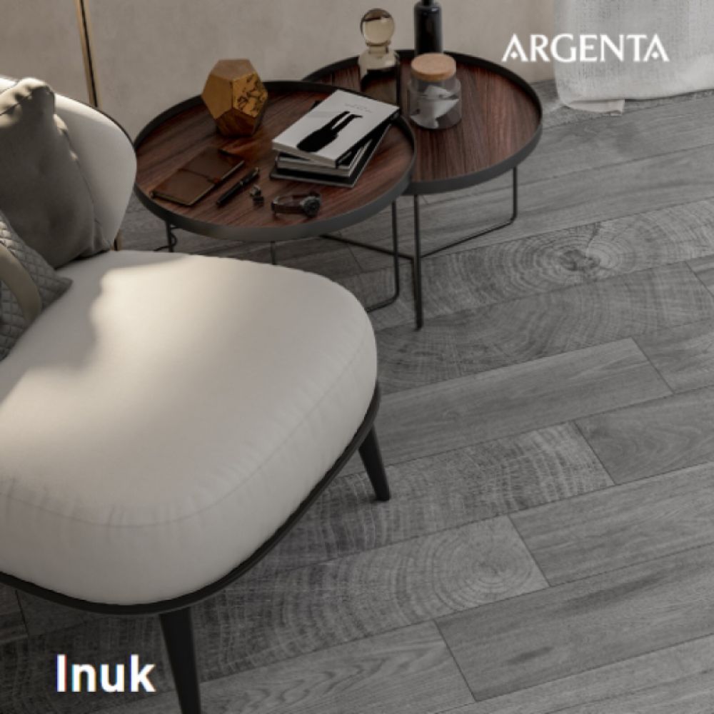 Inuk je inspirisan poprečnim presekom stabala drveća, kombinujući različite šare u pločicama od porcelana sa nazubljenom površinom, čineći ovu seriju potpuno jedinstvenim i prepoznatljivim izborom. Sa svojim formatom 23×120 cm, mat završnom obradom, pedantno izrađenim dizajnom i teksturiranom površinom, ova porcelanska pločica dočarava realizam rezanog drveta, a i dalje je jednostavna za održavanje. Širok spektar boja (dimna, siva, prirodna, med) čini ovu seriju neprocenjivim resursom za projekte enterijera koji žele da donesu osećaj topline.