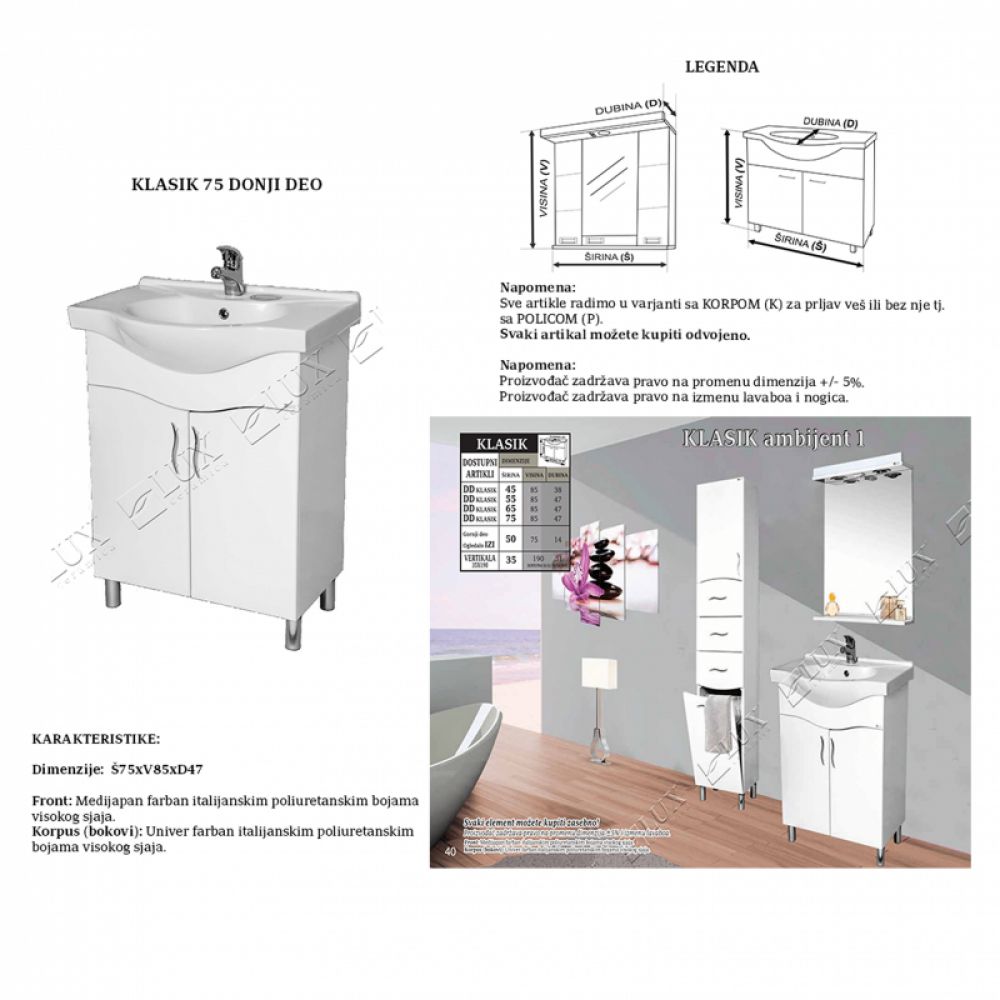 Naziv proizvoda: KLASIK KONTESA 75 - donji deo