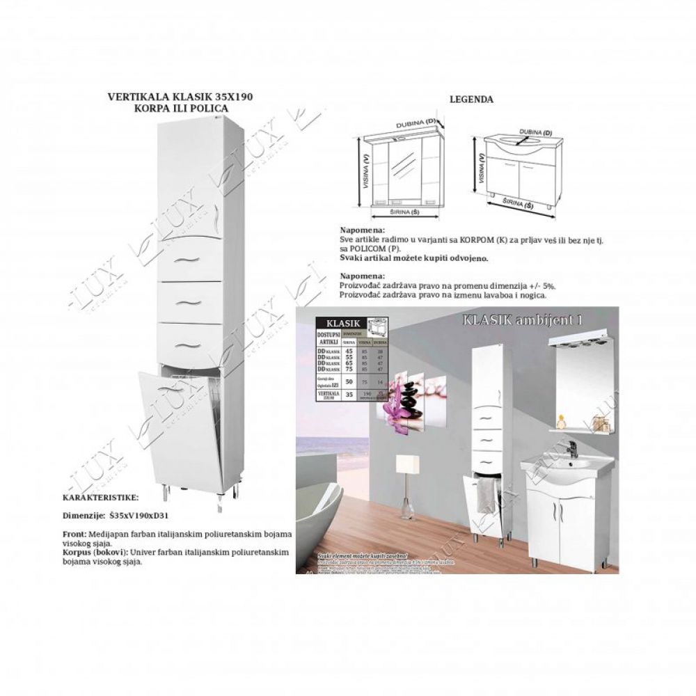 Naziv proizvoda: KLASIK vertikala 35x190 - polica
