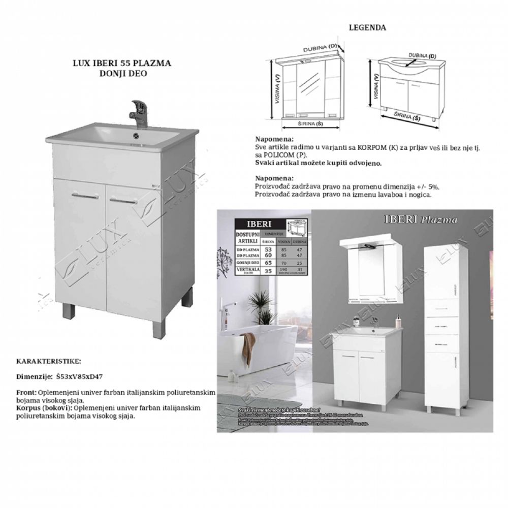 Naziv proizvoda: LUX IBERI 55 PLAZMA - donji deo