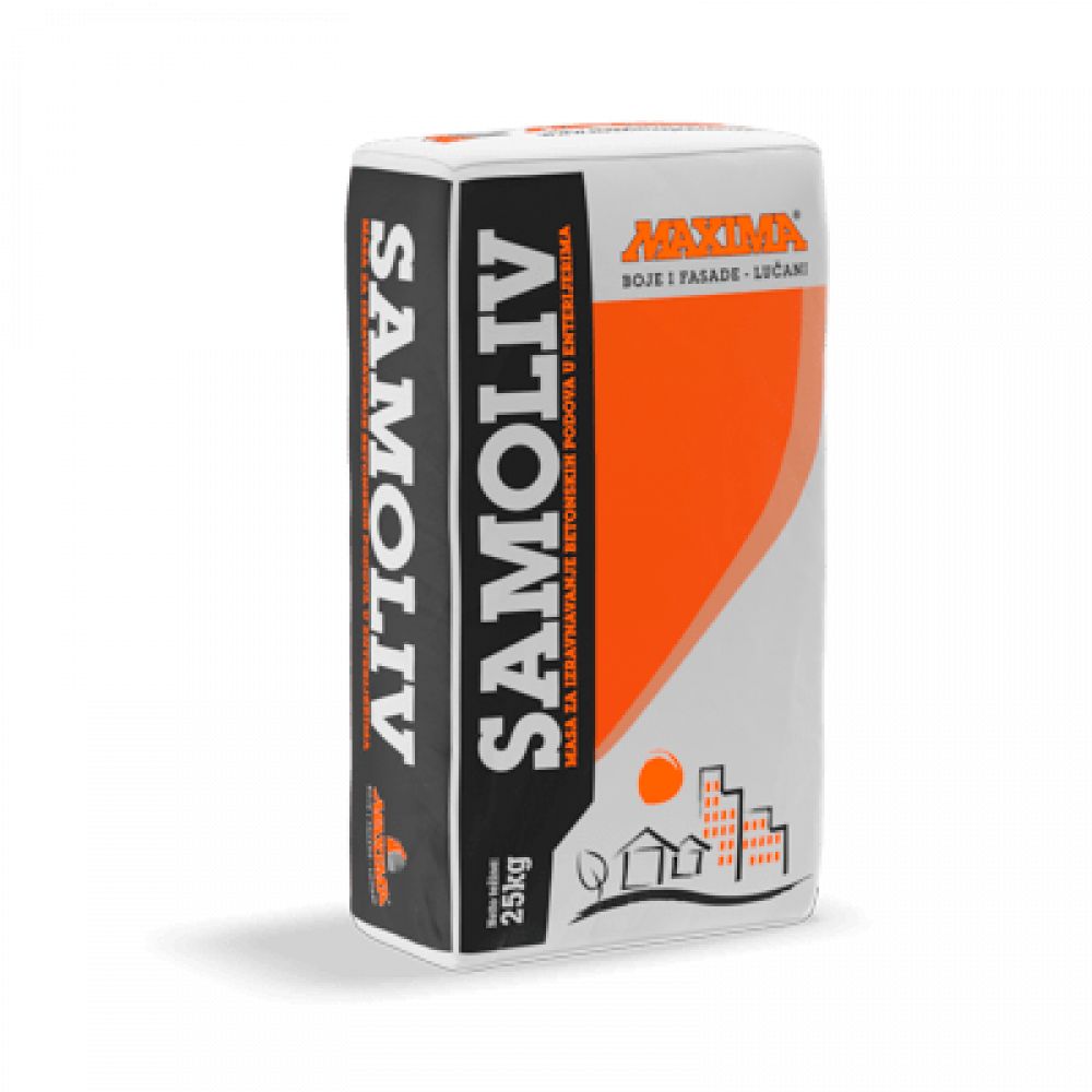 SAMOLIV je cementna samonivelišuća masa, namenjena za izravnavanje betonskih podova u enterijerima. Pogodan je za primenu u prostorijama sa podnim grejanjem, a pre ugradnje podnih obloga (PVC podova, laminata, parketa, keramičkih pločica...). Nakon očvršćavanja, dobija se fina glatka površina. Nanosi se u tankom sloju, maksimalne debljine do 8 mm. Ukoliko se javi potreba sa debljim slojem, nanošenje ponoviti, ali tek preko osušenog sloja. SAMOLIV nije predviđen kao završni gazeći sloj.