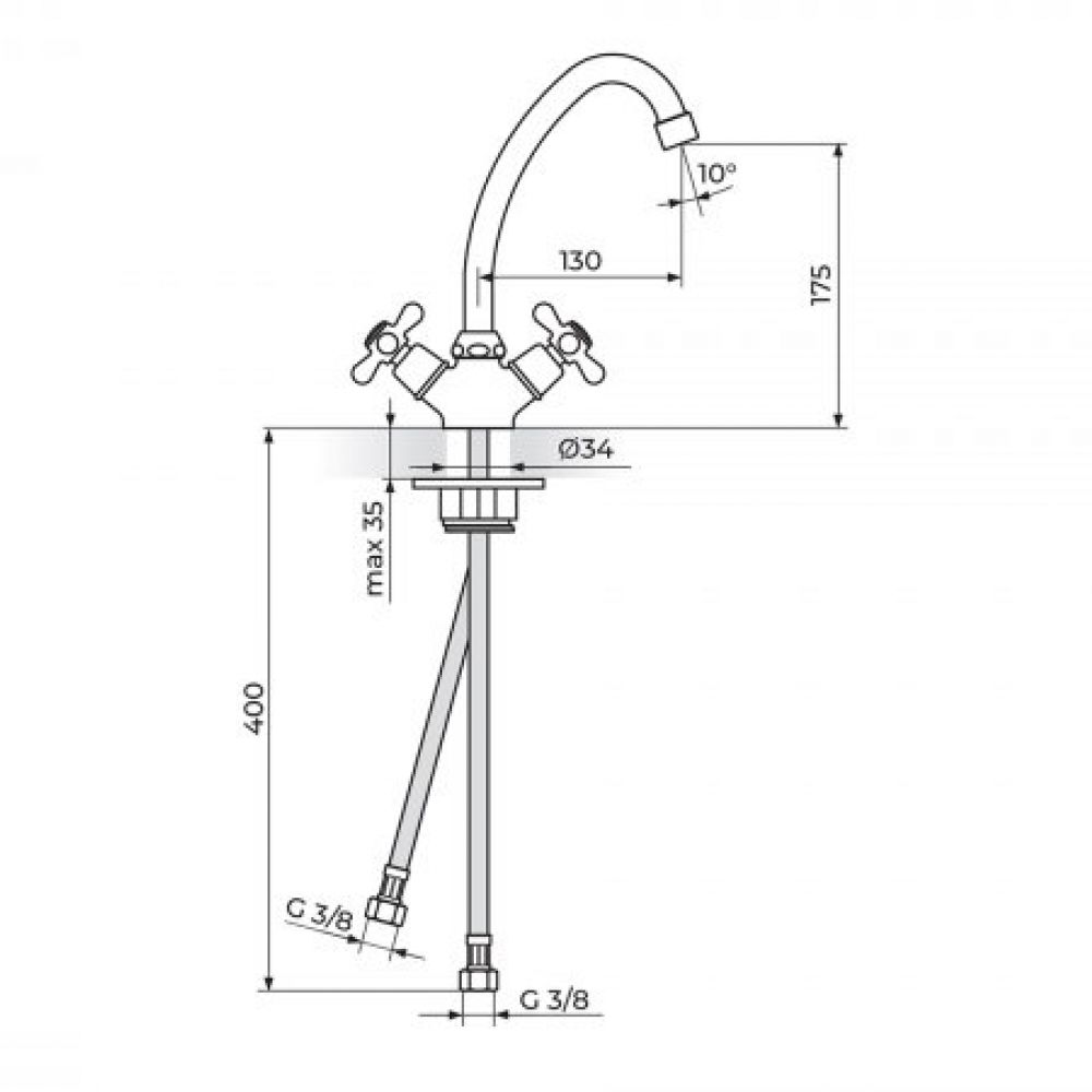 Naziv proizvoda: NOSTALGIJA N23013 Baterija za Sudoperu - Lavabo Izliv 130mm