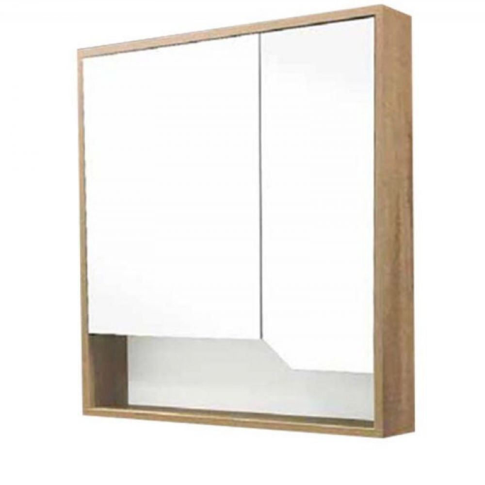 Ormarić sa ogledalom Etna 75×75 Lapino-Mirela domaćeg proizvođača. Idealan sklad funkcionalnosti i dizajna po pristupačnoj ceni za uređenje vašeg kupatilskog prostora. Ormarić izrađen najmodernijom tehnologijom od MDF ploče u dezenu drveta. Prednost izrade od MDF-a je duži vek trajanja ormarića i visoka otpornost na vlagu.