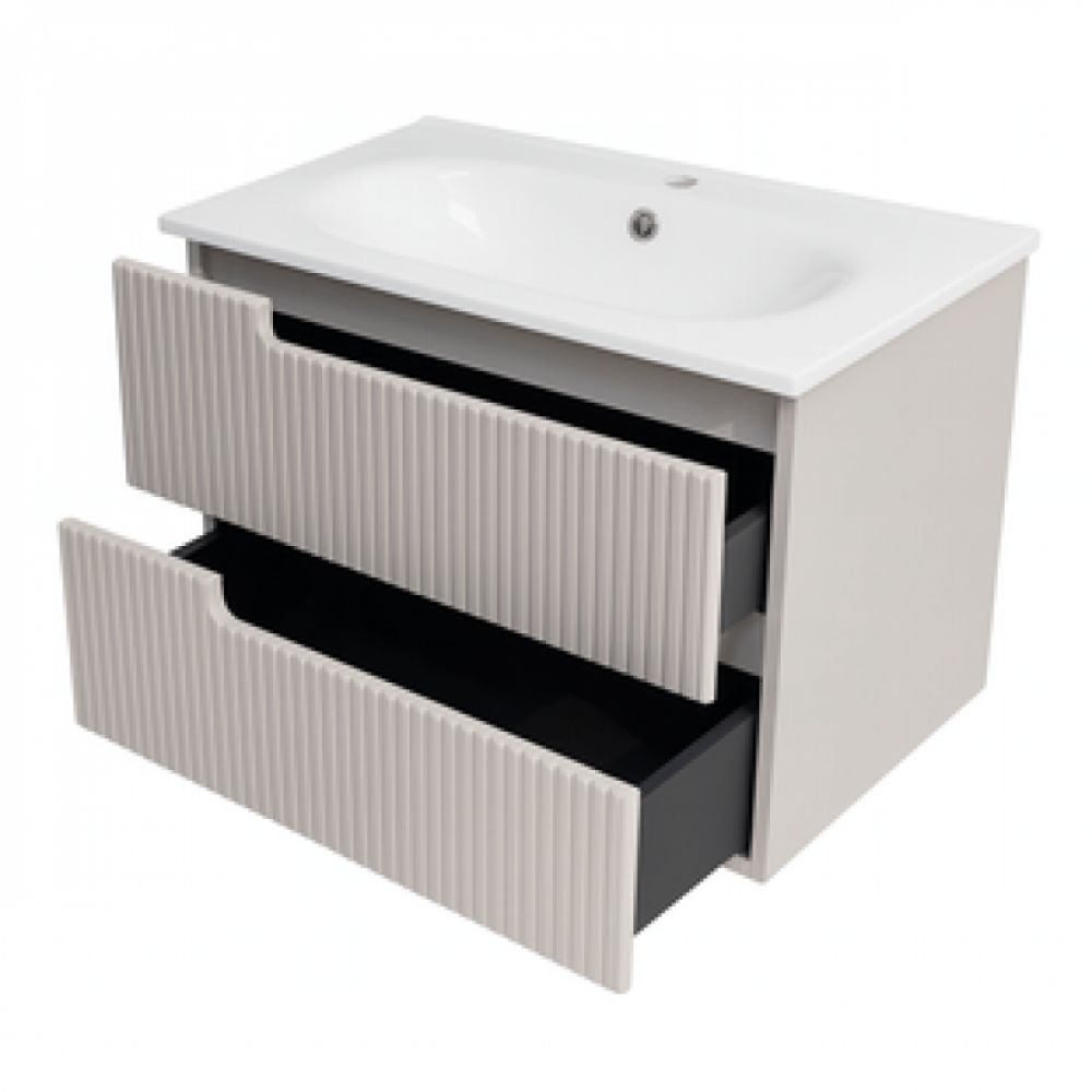 Njegov izgled, u kombinaciji elegantne bele ploče i svetlih frontova u završnoj obradi Pino/Late, stvara osećaj prostranosti i harmonije u kupatilu.