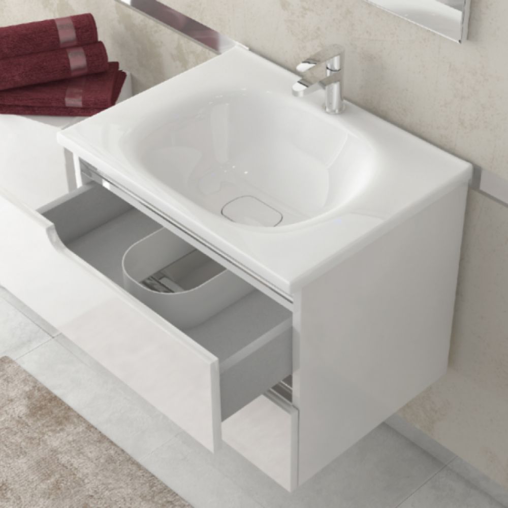Dizajn koji osvaja, profilisanim ivicama i obrađenom površinom što za rezultat daje savršen izgled. Ormarić dolazi u kompletu sa lavaboom. Postoje dve vrste donjih delova klasičan koji ima noge I viseći (konzolni) koji se kači na zid što doprinosi lakšem održavanju u kupatilu jer je mesto ispod samog ormarića pristupačno prilikom održavanja higijene samog kupatila. Jednostavno, savršen spoj cene i kvaliteta. Praktičan i moderan dizajn prati vodeće evropske brendove a akcenat je stavljen na najsitnije detalje poput masivnih ručica.