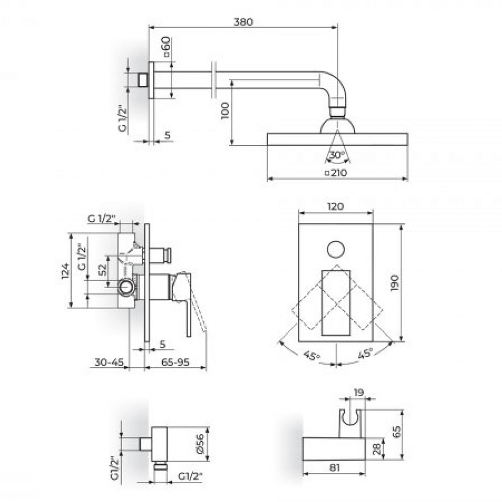 Naziv proizvoda: QUADRO JQ31601 Uzidna Baterija za tuš kadu sa uzidnim i ručnim tušem