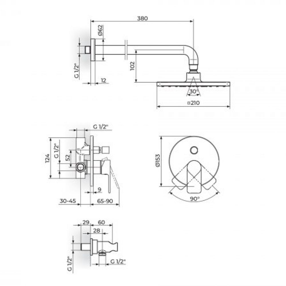 Naziv proizvoda: S2 BLACK 231601B uzidna baterija za tuš kadu