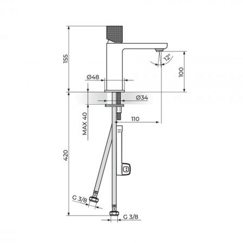 TEHNIČKE KARAKTERISTIKE Jednoručna baterija Minimalistički dizajn Telo od mesinga Završna obrada - PVD Dark black Montiranje na jedan otvor Klasa protoka Z - 7 lit/min NEOPERL® SLIMAIR® SLC® SSR® PPM24SA Keramički mešač CITEC® 25mm PKM25SA Set za pričvršćenje sa jednim vijkom NEOPERL® SPX® priključna creva FB50PX