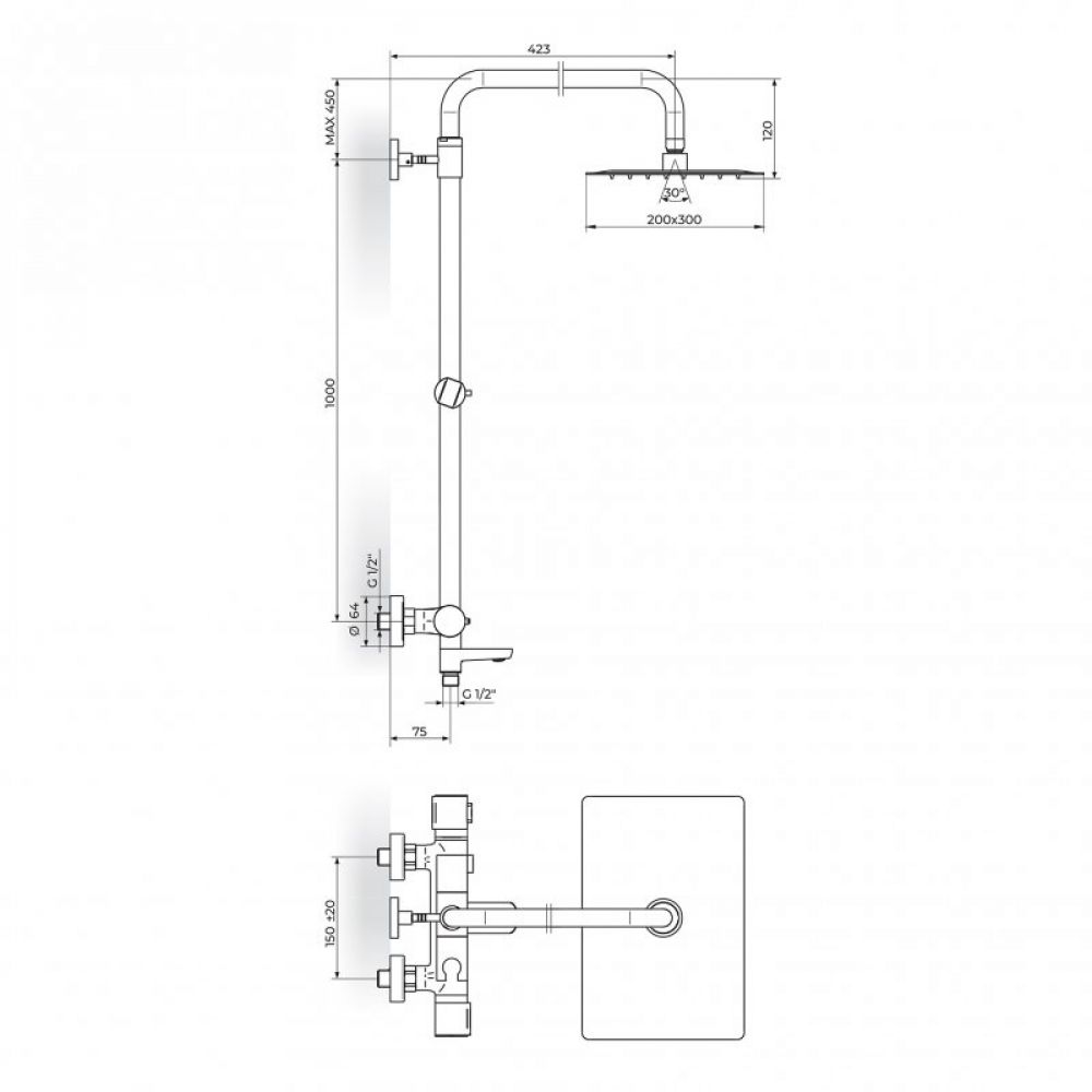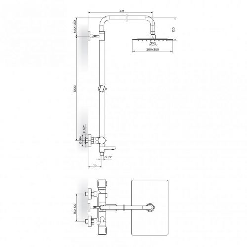 Naziv proizvoda: S2 THERMO 2T37351 Termostatska baterija sa usponskim tušem 200x300mm i izlivom