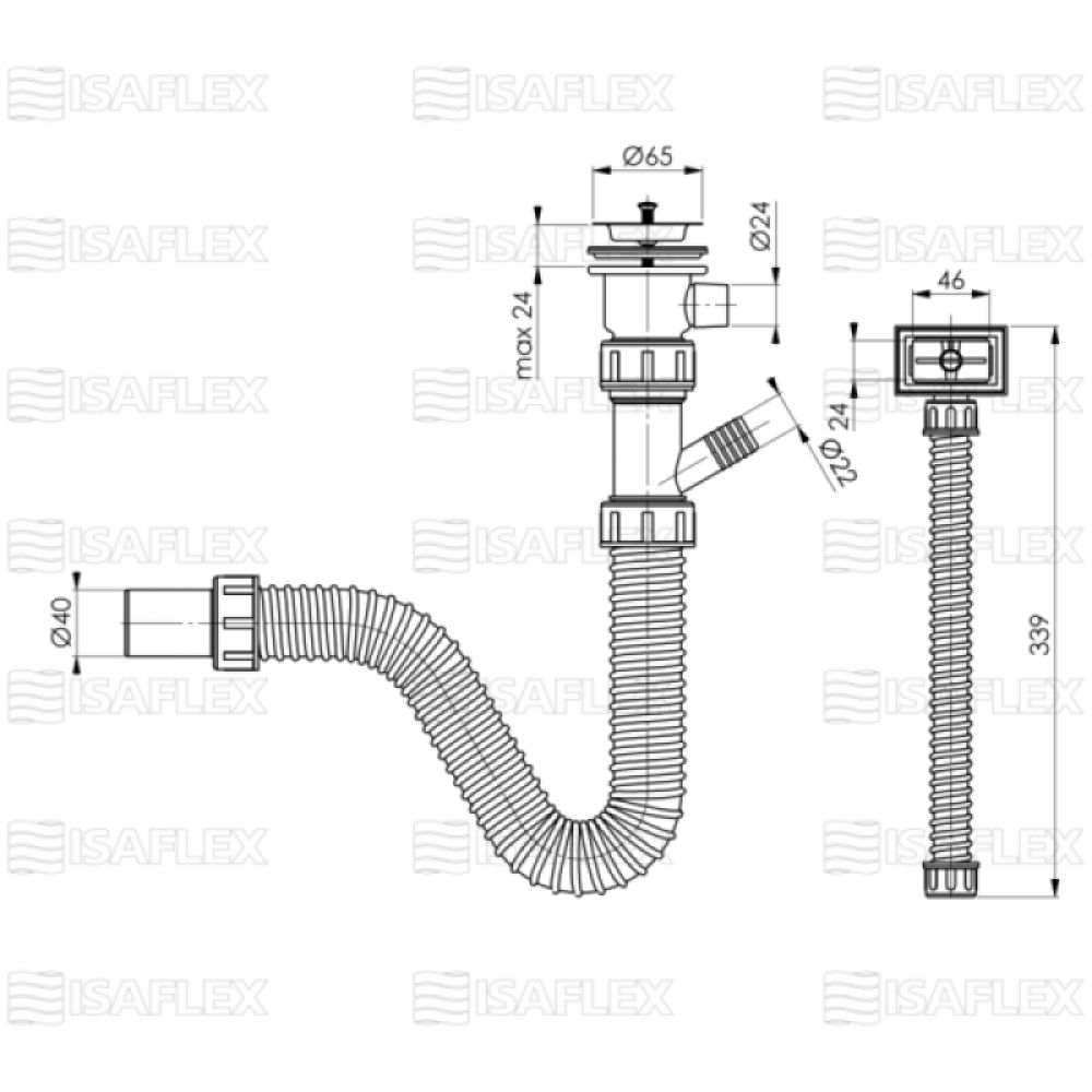 Naziv proizvoda: Sifon jednodelne sudopere sa prelivom i priključkom ISAFLEX