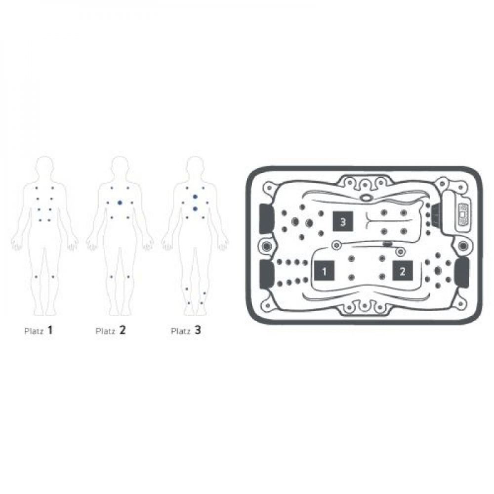 35 mlaznica za masažu pružaju savršeno blagostanje. Masažna kada nudi 2 sedišta i ležeći položaj, a dodatno je poboljšana LED osvetljenjem, zvučnim sistemom i digitalnom kontrolom.