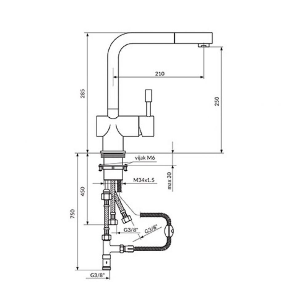 Naziv proizvoda: STEEL JS38603 Baterija za sudoperu - sa izvlačnim tušem električni prelivni bojler nerđajući čelik OUTLET