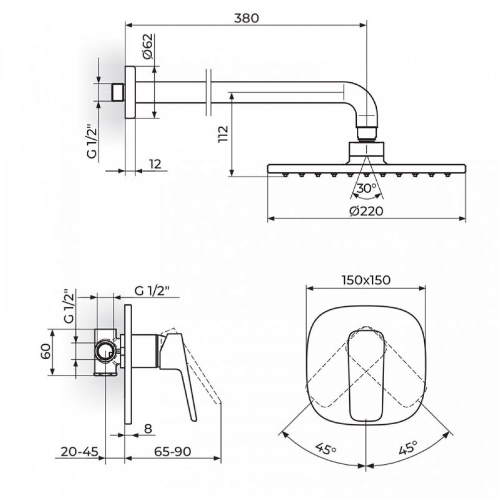 - Tuš ruža 250x250 mm sa zglobom - PTRUSP11
