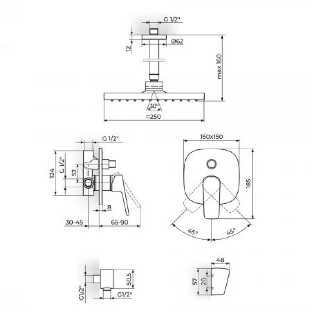 Naziv proizvoda: STOLZ 131607 uzidna baterija sa plafonskim i ručnim tušem