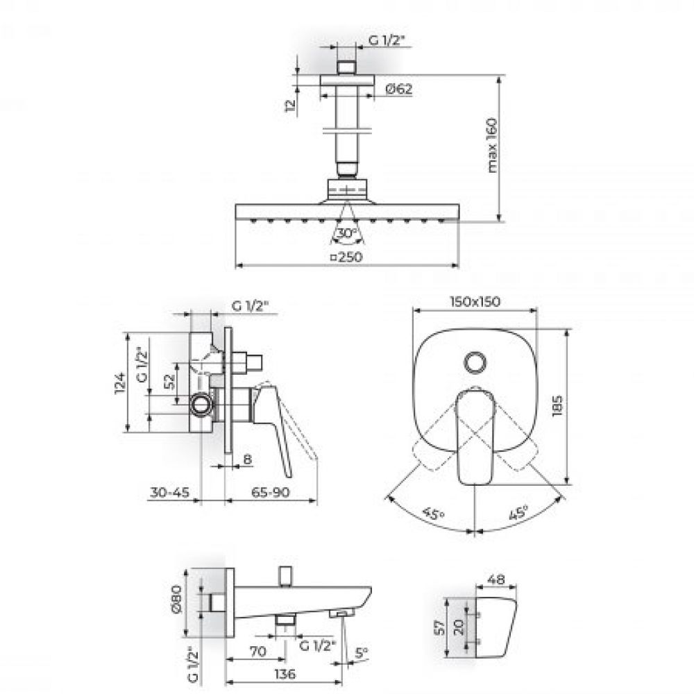 Naziv proizvoda: STOLZ 131707 uzidna baterija sa izlivom, plafonskim i ručnim tušem
