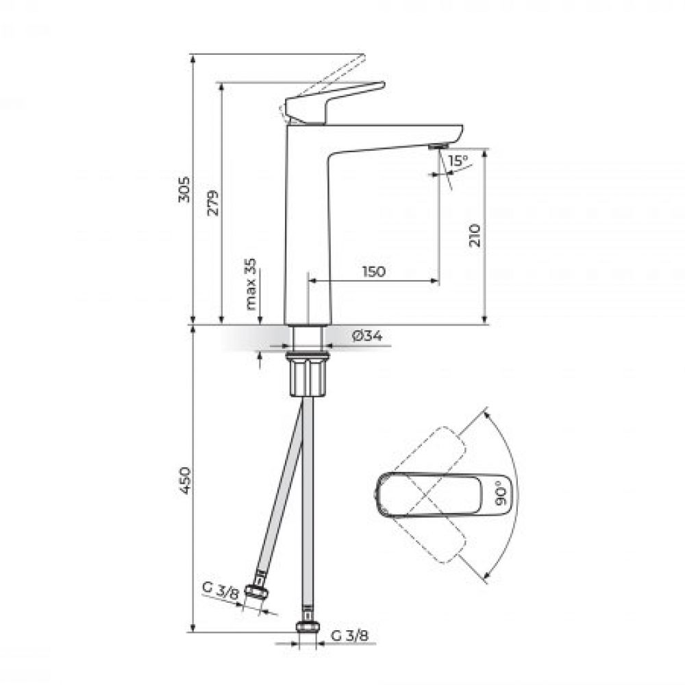 Vrsta robe: Baterija za lavabo visoka - white