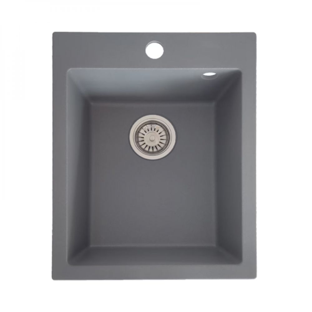 Granitna sudopera VESTA 40x50cm Siva grafit ugradna je dostupna u više elegantnih boja, crna mat, crna, tamno bež, siva grafit, bela. Ovaj širok spektar boja omogućava lako uklapanje u kuhinjske prostore. Sudopera ima jedno korito bez oceđivača.