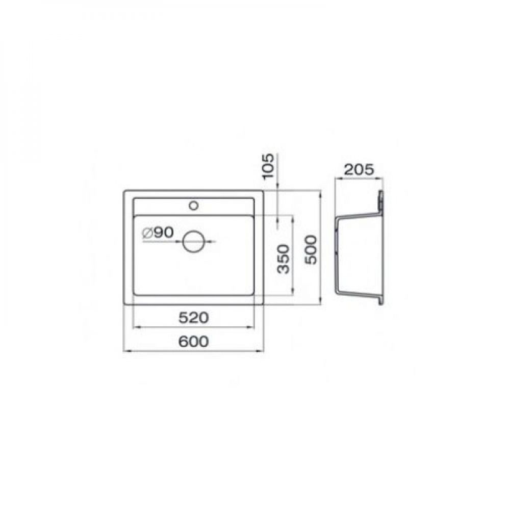 Naziv proizvoda: Metalac Sudopera X Granit Quadro 60 600x500 fi 90 sa sifonom Šampanjac