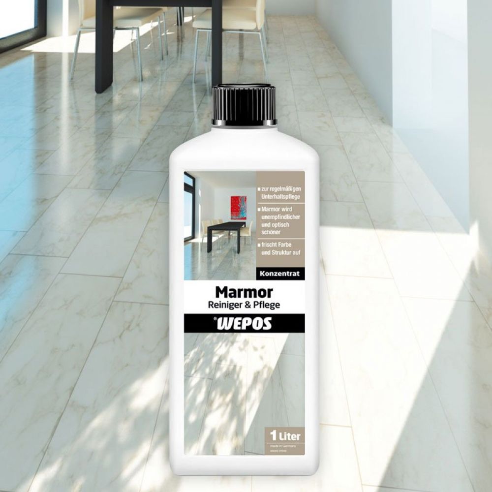 Koncentrat! Za redovno održavanje. Mermer postaje manje osetljiv i vizuelno lepši. Osvežava boju i strukturu. Čisti i neguje u jednom potezu. Smanjuje prodiranje prljavštine u površinu. Stalnom upotrebom poboljšava izgled mermerne površine. Daje blistav sjaj bez potrebe za poliranjem.