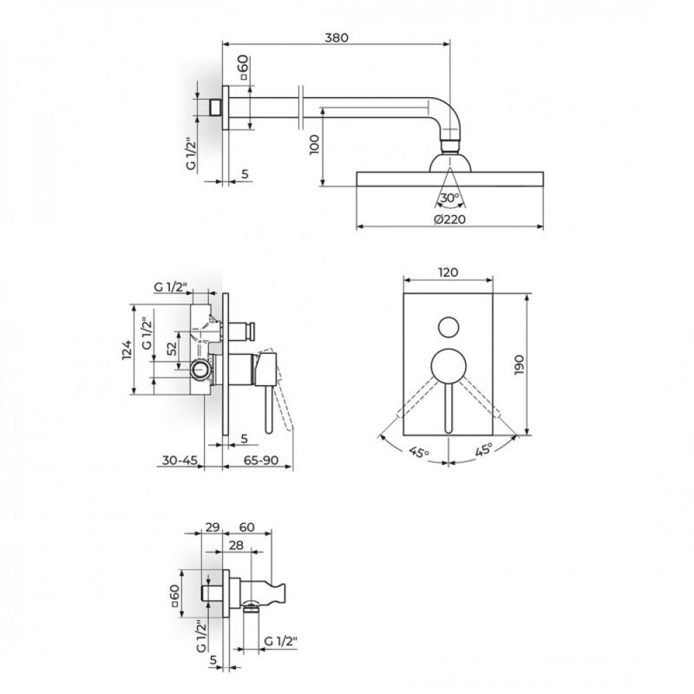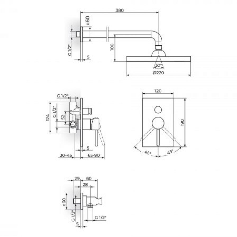Naziv proizvoda: ZERRO JZ31601 uzidna baterija za tuš kadu sa uzidnim i ručnim tušem