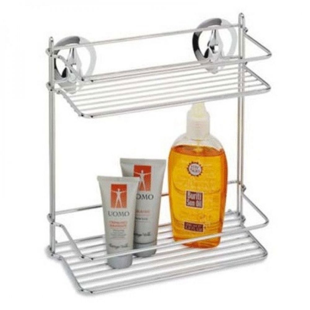 Zidna 2-spratna polica za kupatilo za šampone i pribor za tuširanje sa samolepljivim kukicama i šrafovima