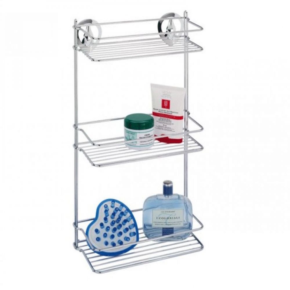 Zidna 3-spratna polica za šampone i pribor za tuširanje sa samolepljivim kukicama i šrafovima