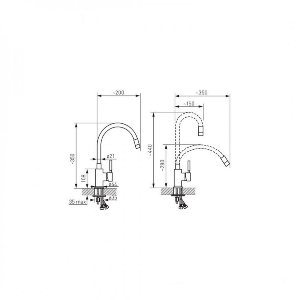 - Promenljiva visina cevi od 280 mm do 440 mm