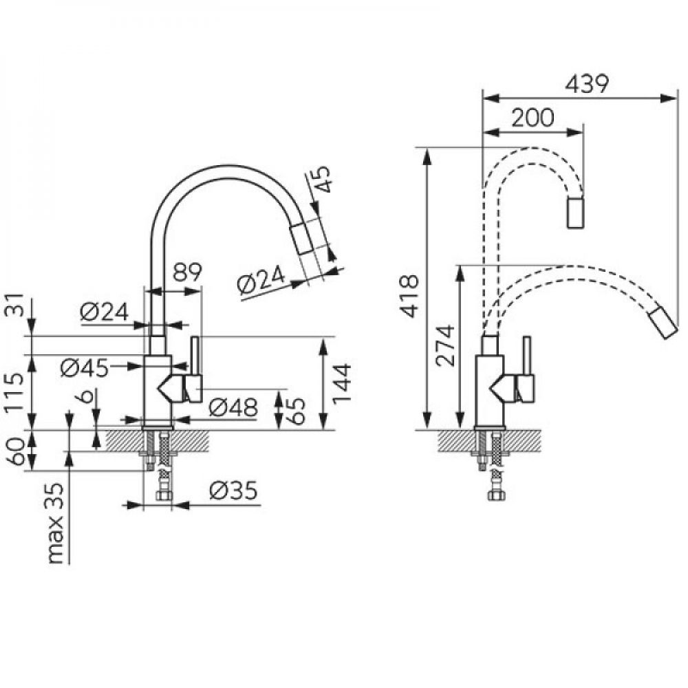 Naziv proizvoda: ZUMBA - Baterija za sudoperu sa fleksibilnim izlivom NERO